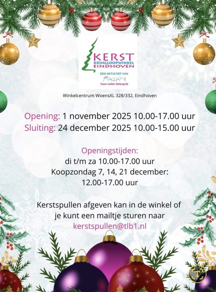 Vanaf 1 november tot en met 24 december opent de Kerstkringloopwinkel in winkelcentrum Woensel XL opnieuw haar deuren. Het initiatief komt, net als voorgaande jaren, van het enthousiaste Team Lekker Belangrijk. De opbrengst gaat naar verschillende lokale goede doelen, waaronder Centrum de Eik.
